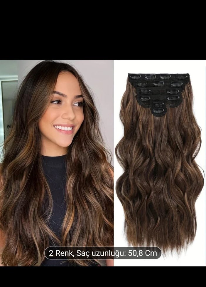 Kahverengi dalgalı, 50,8 cm uzunluğunda çıt çıtlı saç hiç kullanılmadı 1 adet 4lü 1 adet 3lü 2 adet 2li 2 adet 1li
