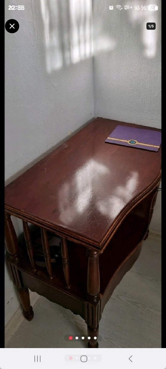Kahverengi ahşap çekmeceli masası, pürüzsüz yüzey ve sağlam ayaklara sahiptir. Alt raf ekstra saklama alanı sağlar.