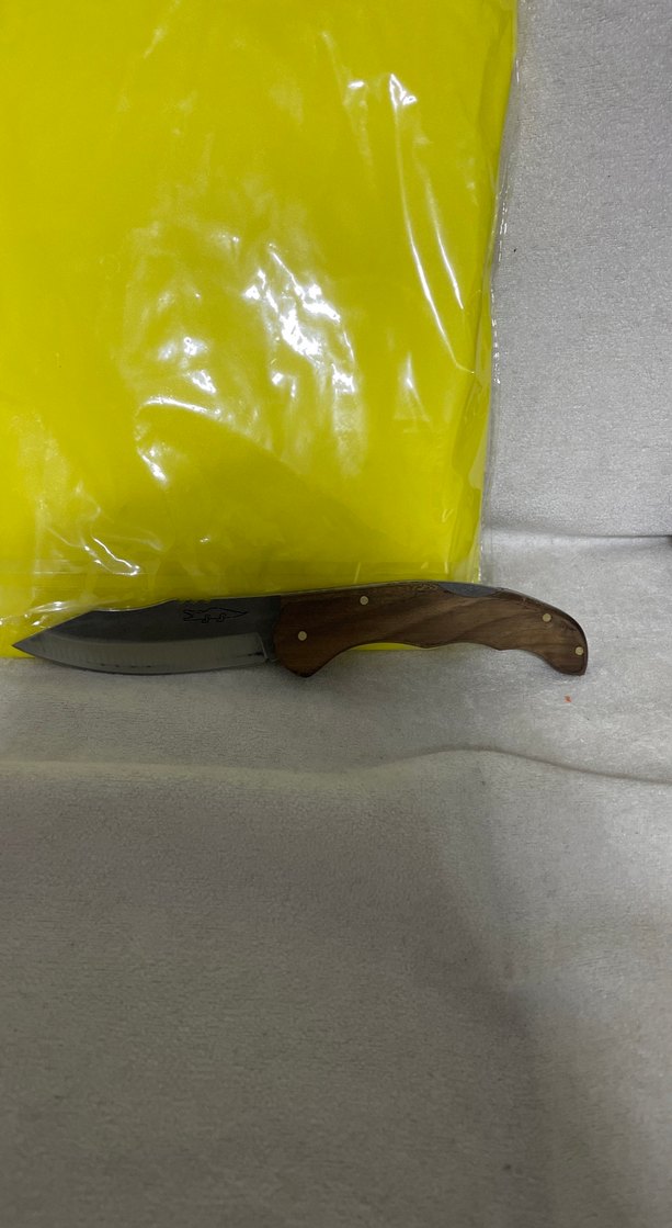 Kahverengi ahşap saplı, katlanabilir bıçak, sağlam tutuş ve pratik kullanım sağlar. ️