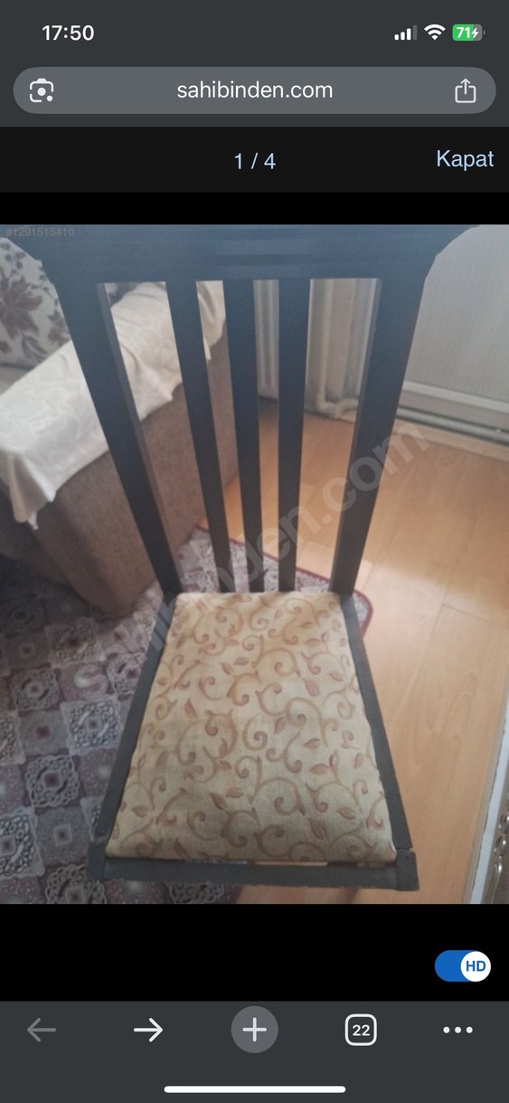 Kahverengi ahşap yüksek sandalye, bej desenli yastıklı oturma alanıyla rahatlık ve şıklık sunar.