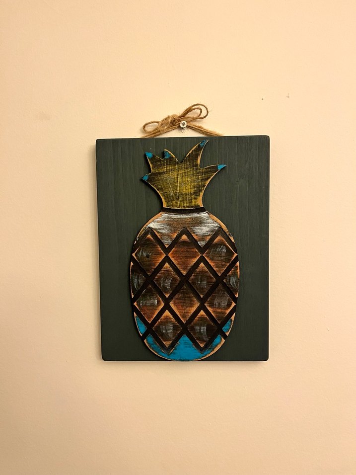 Doğal ip ile asılabilen, rustik görünümlü koyu kahverengi ananas şeklinde duvar dekoru.