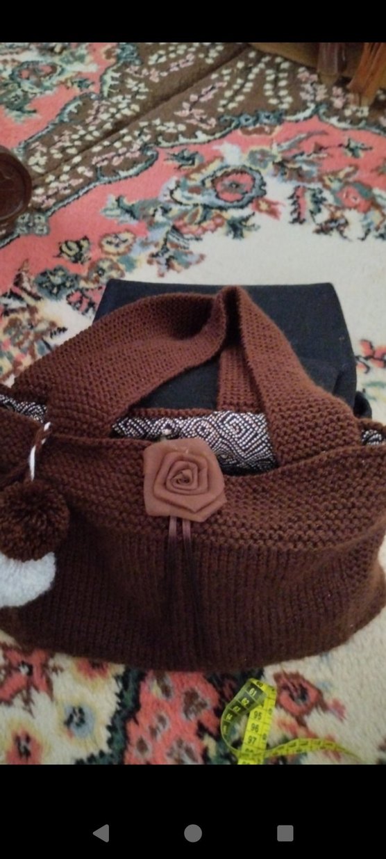 En:39 cm. Boy:28 cm ölçülerinde Kahverengi örgü kadın çanta, yumuşak örgü dokusu ve önünde çiçek detayıyla bohem tarzda. Günlük kullanıma uygun, rahat ve sıcak bir görünüm sunar.