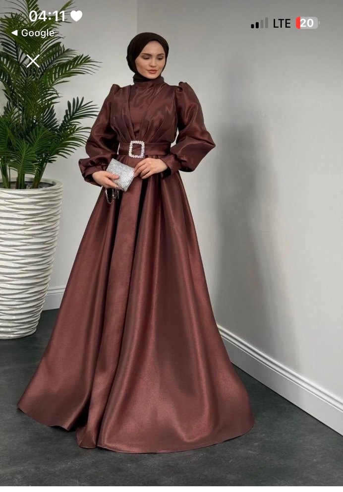 Kahverengi Astarlı Prenses Abiye 42/44Beden Etiketli yeni