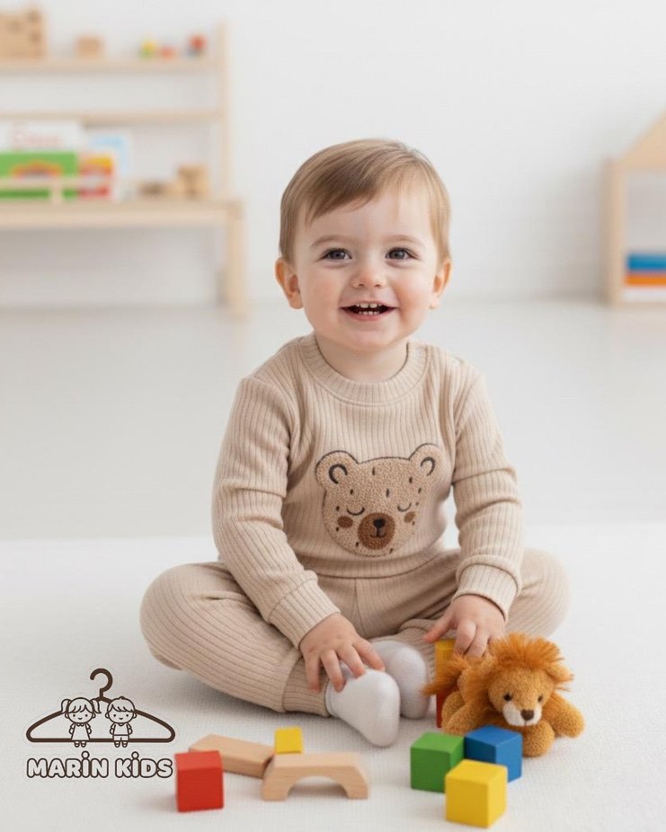 Uzun kollu, bisiklet yaka kahverengi bebek tulumu, yumuşak örme kumaştan yapılmış ve pastel ayı desenlidir. Soft renk sevenlere özel erkek ikili takımımız 1 -2-3 yaş seçenekleri ile stoklarımızda mevcuttur.
