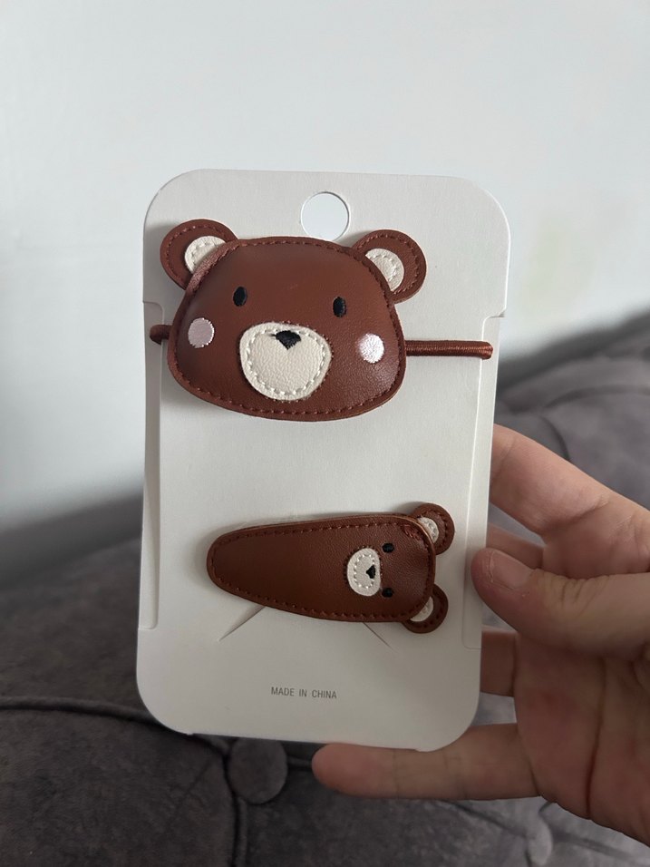 Kahverengi Ayıcık Desenli Çocuk Saç Tokası Seti