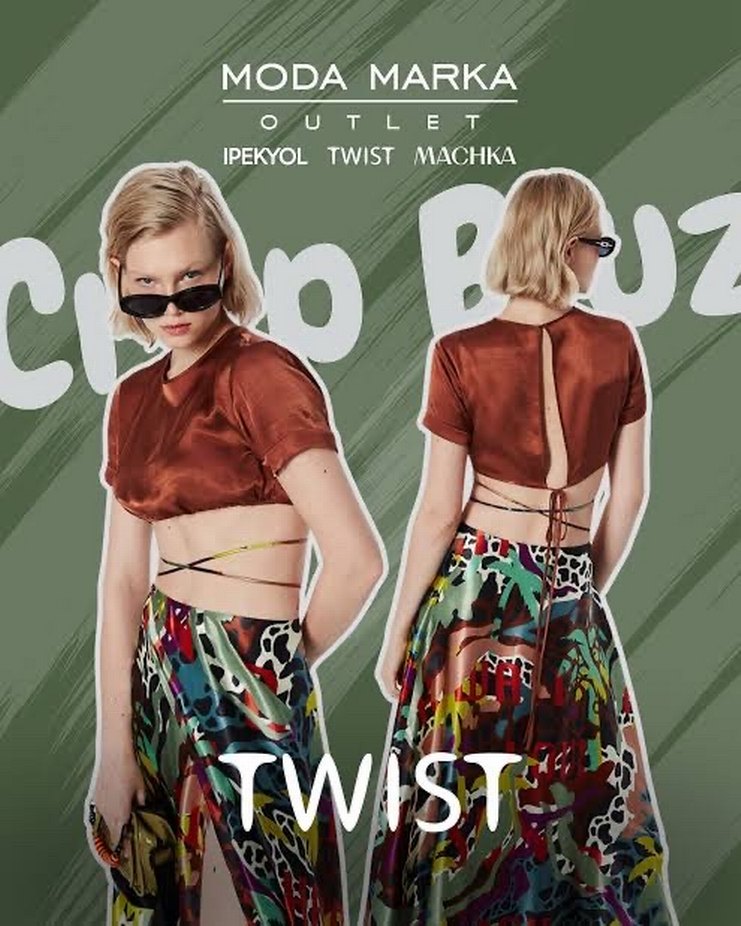 Kahverengi, bağcıklı, kısa kollu, askısız crop top. Sentetik kumaştan, salaş ve drapeli tasarım, tie-dye desenli, parti için uygun.