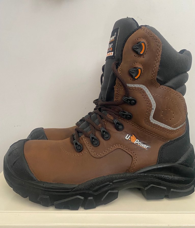U-POWER CALGARY UK S3 STC Çelik burunlu iş botu Koyu kahverengi kauçuk tabanlı, bağcıklı erkek biker botu, sokak stiline uygun outdoor kullanıma uygun.