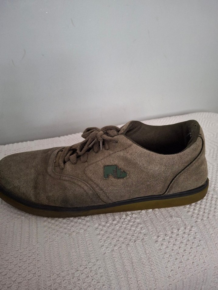 Gri tonlarında kahverengi bağcıklı erkek günlük ayakkabı, kauçuk tabanlı, sade tasarımlı, günlük kullanım için uygun.