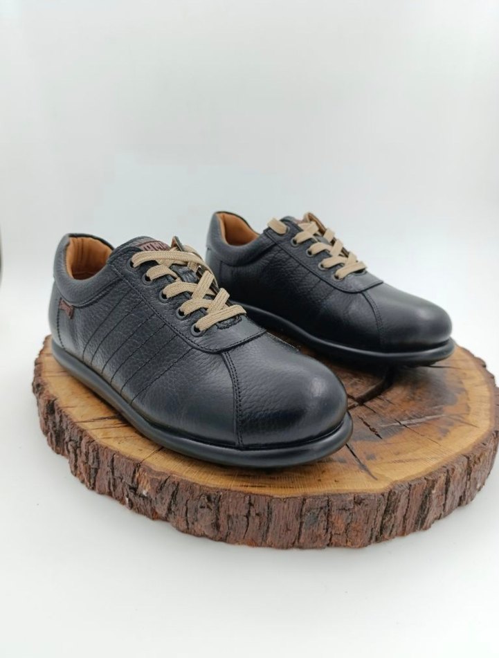 Siyah renkli iç dış hakiki deri ,krem bağcıklı erkek günlük ayakkabı, konvansiyonel tasarım ve kauçuk taban ile günlük kullanıma uygun.