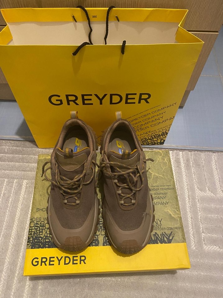 Kahverengi bağcıklı erkek outdoor ayakkabısı, kauçuk malzemeden üretilmiş ve baskılı desenli. Sokak stiline uygun, trend günlük kullanım için GREYDER marka.