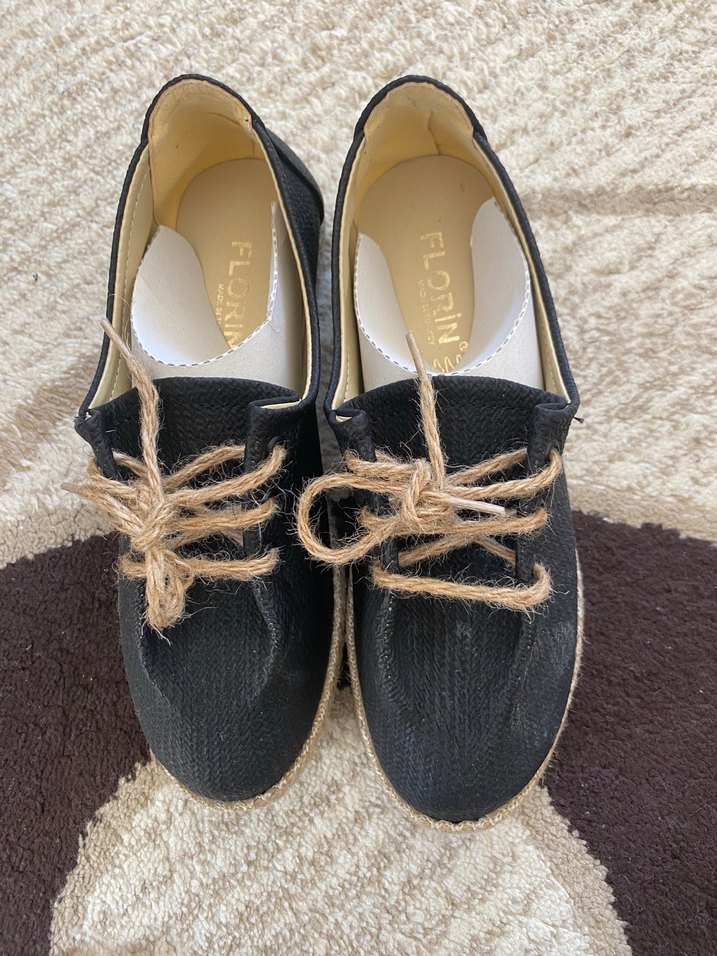 Kadınlar için kahverengi bağcıklı, dolgu topuklu espadril. Kauçuk malzemeden, sade ve bohem tarzda, rahat günlük kullanım için uygundur.