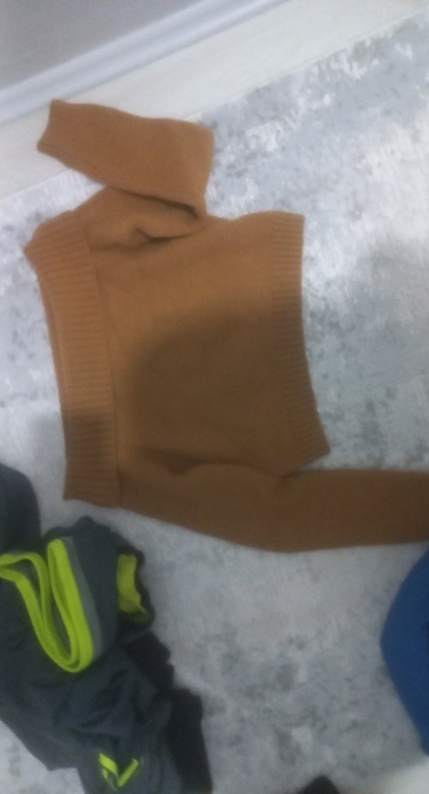 Bu kahverengi, balıkçı yaka ve uzun kollu kadın kazak, örgü dokusuyla rahat ve sıcak bir his sunar. Normal midi boyda, sade ve şık günlük kullanıma uygundur.