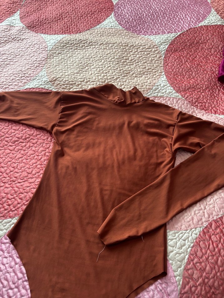 Kahverengi, balıkçı yaka ve uzun kollu bu dar kesim bluz, yumuşak sentetik kumaştan olup günlük kullanım için şık ve rahat bir sokak stili sunar. Özel dikim kullanılmadı