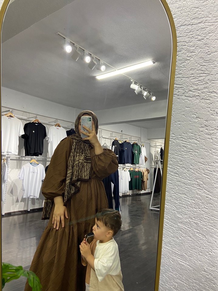 Kahverengi balon kol elbise