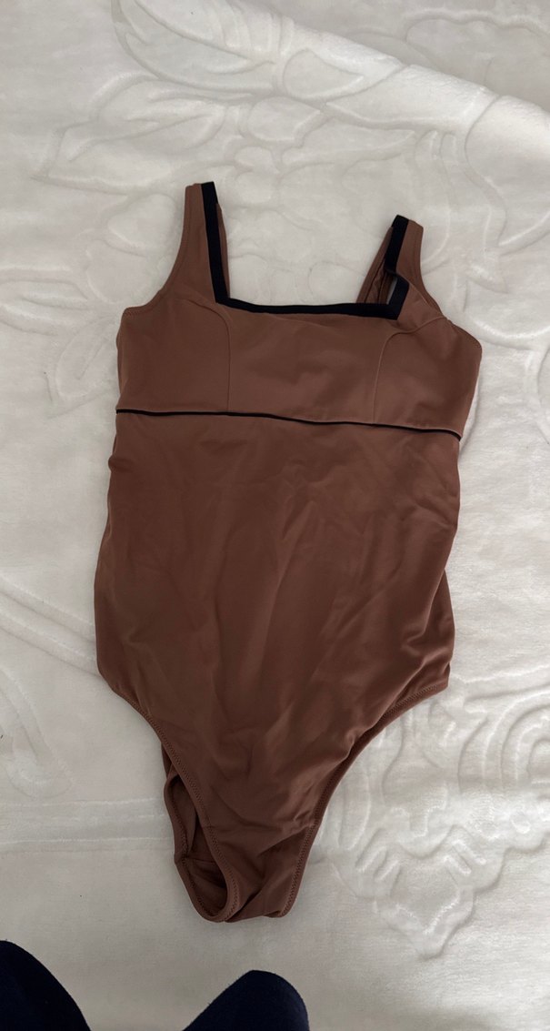 Kahverengi, kolsuz, vücuda oturan, midi boy basic kadın mayo. Günlük kullanıma uygun sade ve şık tasarım. ♀️