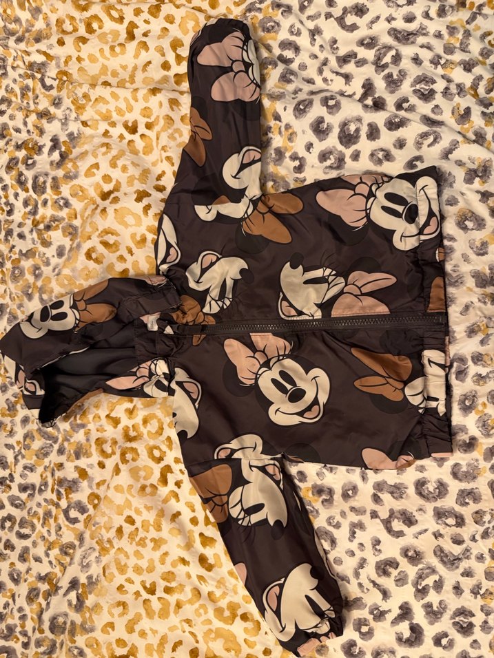 Kahverengi baskılı çocuk montu, sentetik kumaştan yapılmıştır ve eğlenceli bir desen içerir. Çocuklar için rahat ve şık bir tercihtir.
