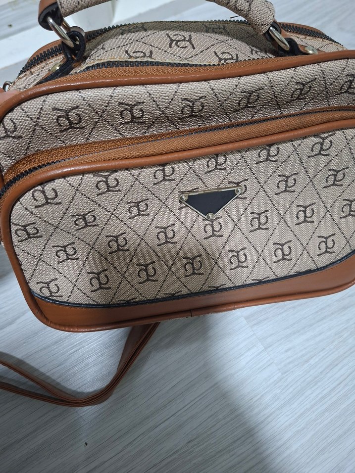 Kahverengi baskılı deri kadın çanta, fermuarlı bölmeleriyle trend sokak stili için uygun. Gri tonlarında, Paris havası taşıyor.
