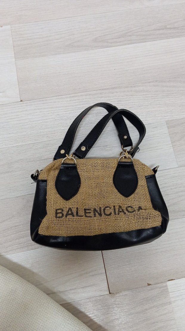 Kahverengi baskılı deri kadın çanta, tokalı askıları ve çıkarılabilir uzun askısı ile günlük sokak stili için uygun. Üzerinde Balencias yazısı bulunur.