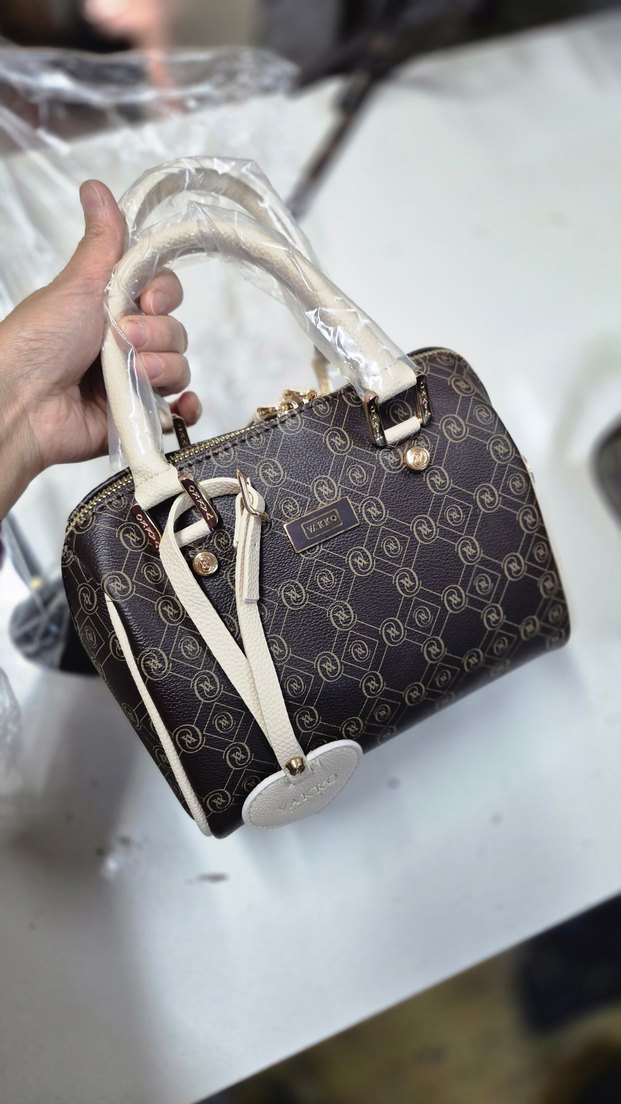 Kahverengi Baskılı Deri Kadın Çanta