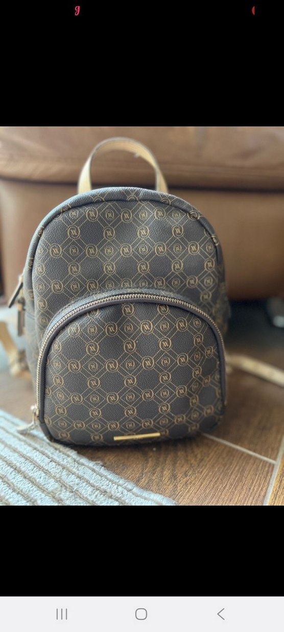 Kahverengi baskılı deri kadın sırt çantası, tokalı detaylarla klasik zarafet ve sokak stili sunar, günlük kullanıma uygundur.Vakko mağazasından alındı orijinal