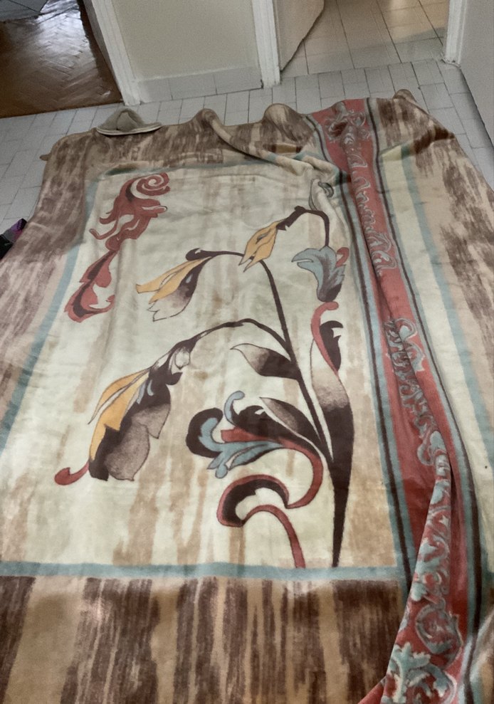 Koyu kahverengi baskılı çiçek desenli, yumuşak ve sıcak kumaştan yapılmış battaniye. Evde konfor ve şıklık sağlar.
