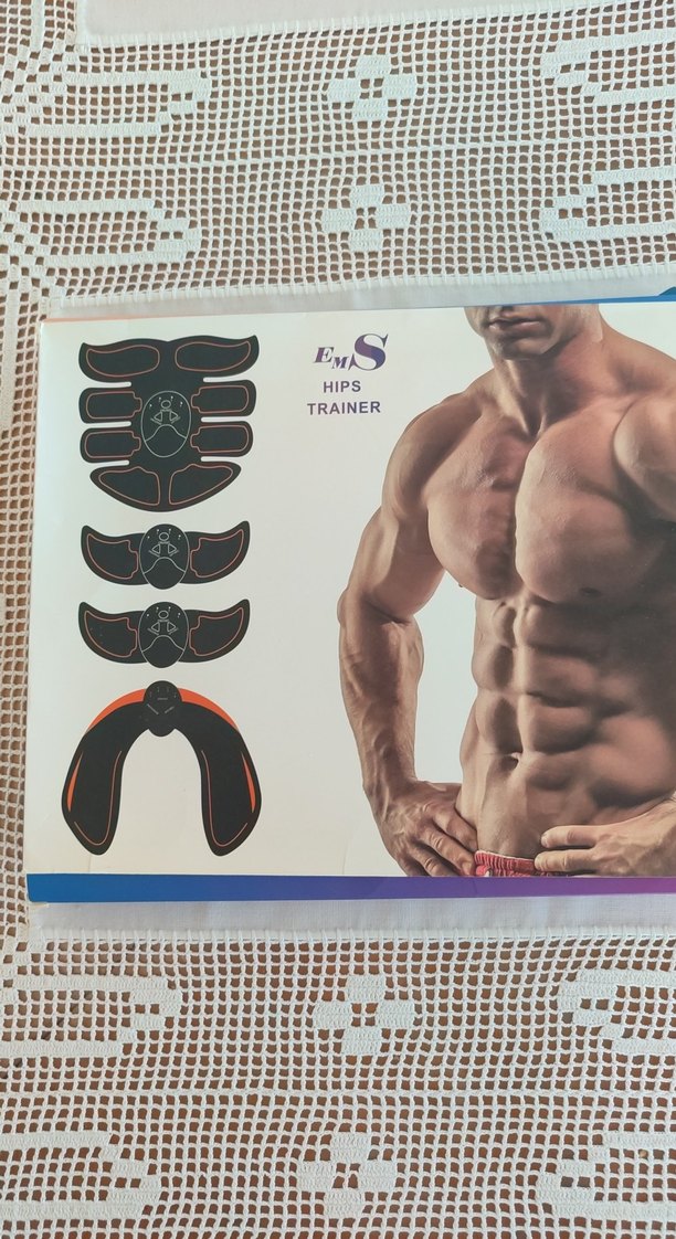 Kahverengi baskılı egzersiz matı, "TRAINER" ve "HIPS" yazılı, kas çalıştırmaya yönelik tasarım. ️