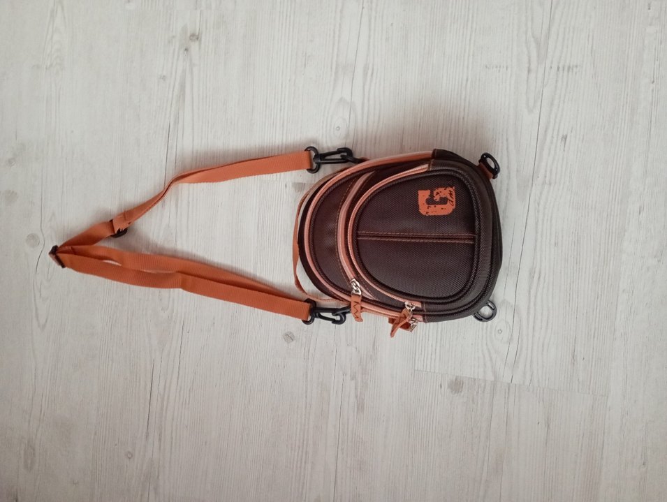 Kahverengi, baskılı ve tokalı erkek omuz çantasıdır. Biker tarzı ve ayarlanabilir kayışlarıyla şık ve rahat kullanım sağlar.