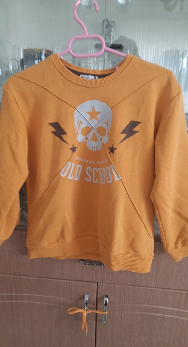Kahverengi Baskılı Erkek Sweatshirt 11 12 yas