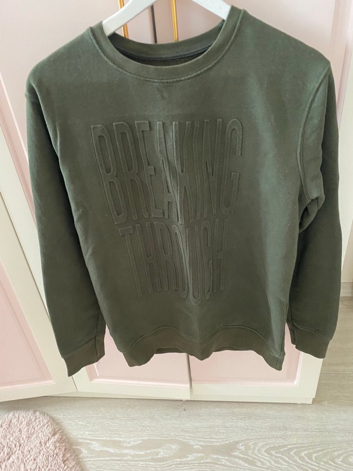 Kahverengi, yuvarlak yakalı, uzun kollu, baskılı ve bol kesim erkek sweatshirt. Yumuşak ve sıcak dokusu günlük kullanım için uygundur.