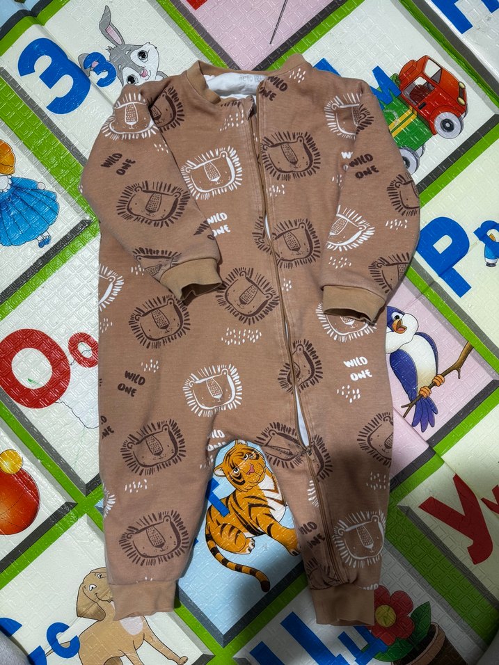 Kahverengi bebek tulumu, uzun kollu, yuvarlak yaka ve renkli baskılı desene sahiptir. Yumuşak ve sıcak kumaştan üretilmiş, fermuarlı kolay giyilir. Üründe 2yaş yazıyor ama siz 1 1.5yaş olarak düşünün