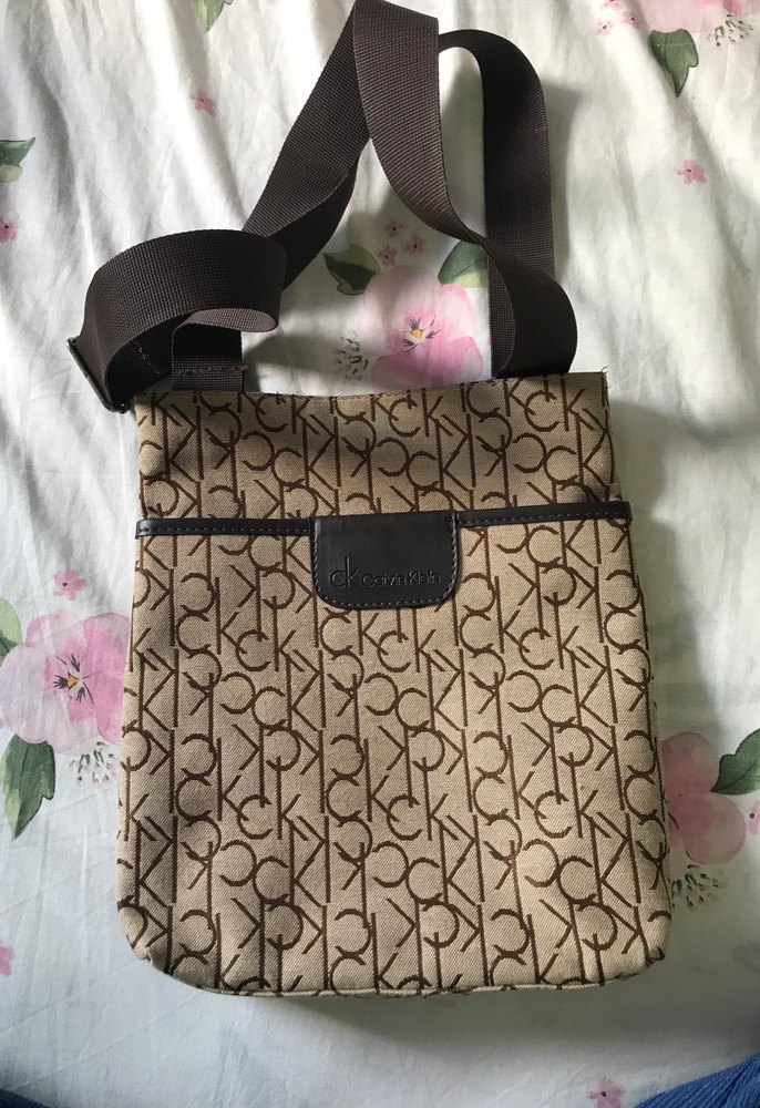 Kahverengi baskılı sentetik kumaştan çapraz çanta, tokalı askısı ile günlük kullanıma uygun, trend ve rahat tarzda. Orijinaldir