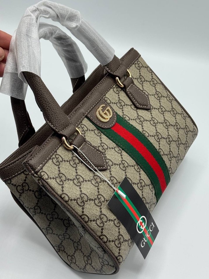 Kahverengi baskılı, tokalı ve sentetik kumaştan yapılmış kadın omuz çantası. Gri detayları ve klasik sokak stili bulunur.