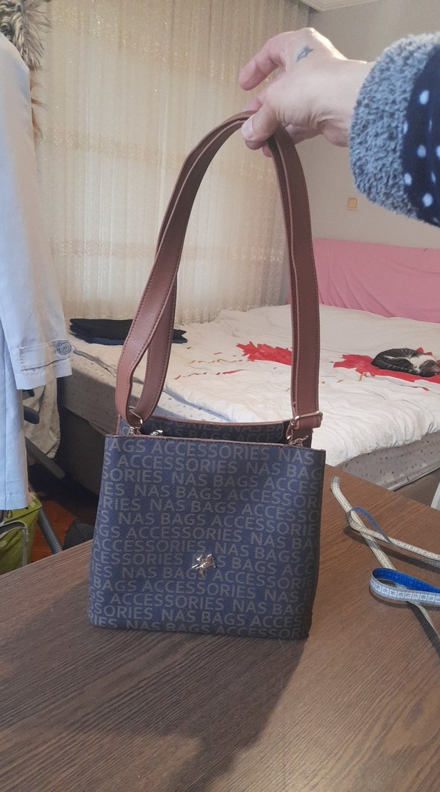 Kahverengi tokalı saplara sahip, baskılı gri desende, sentetik kumaştan yapılmış kadın omuz çantasıdır. Trendy günlük ve sokak tarzına uygundur. yenidir fermuarları çalışıyor hiçbir sorunu yok tertemiz sağlam renk solması sökük delik deforme yok tüm bilgileri ölçüleri resimlerde mevcut a kalite
