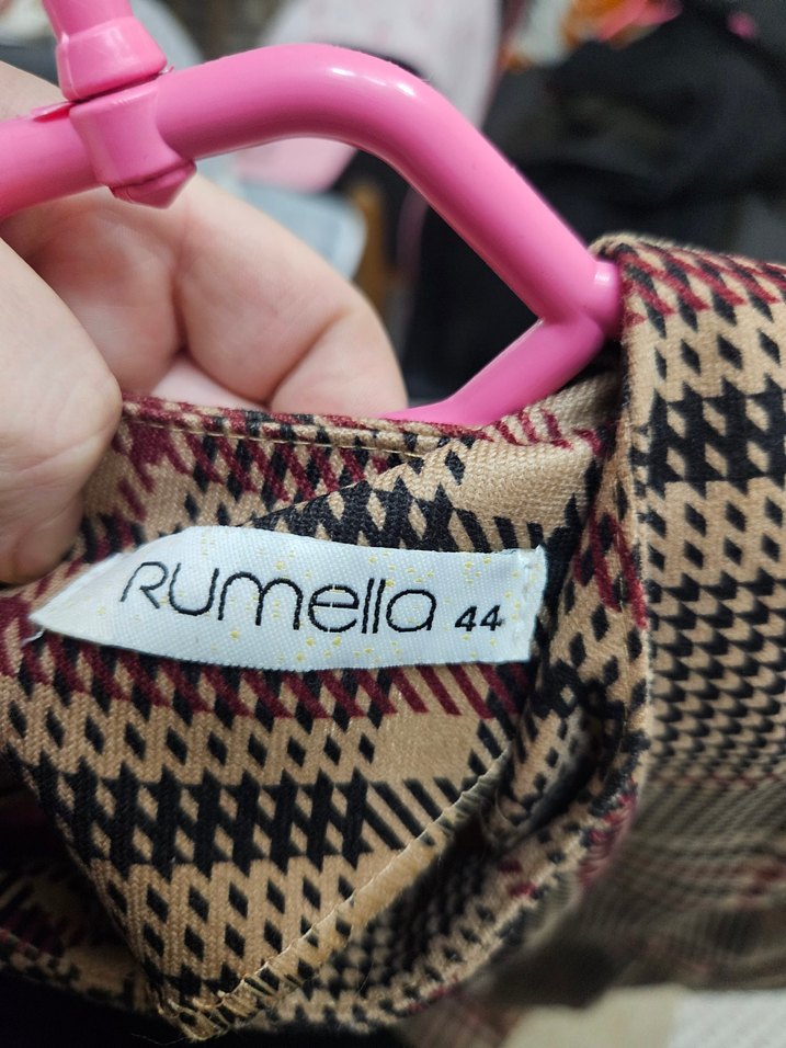Koyu kahverengi fırfır detaylarıyla sokak stili sunar. Marka: Rumella, beden 44.