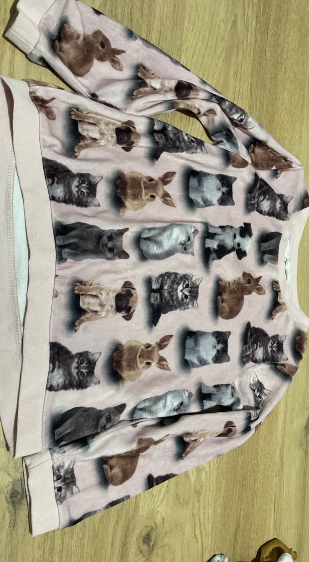 Pastel kahverengi tonlarda, çeşitli kedilerin kürk detaylı baskılarıyla sokak stili sweatshirt. Rahat ve eğlenceli tasarım sunar.
