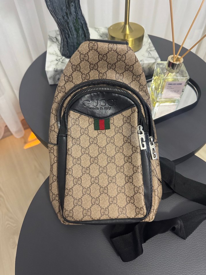 Kahverengi baskılı erkek omuz çantası, tokalı detaylara sahip ve sokak stiline uygun tasarlanmıştır. Güvenli depolama için çoklu fermuarlı bölmeleri bulunur.