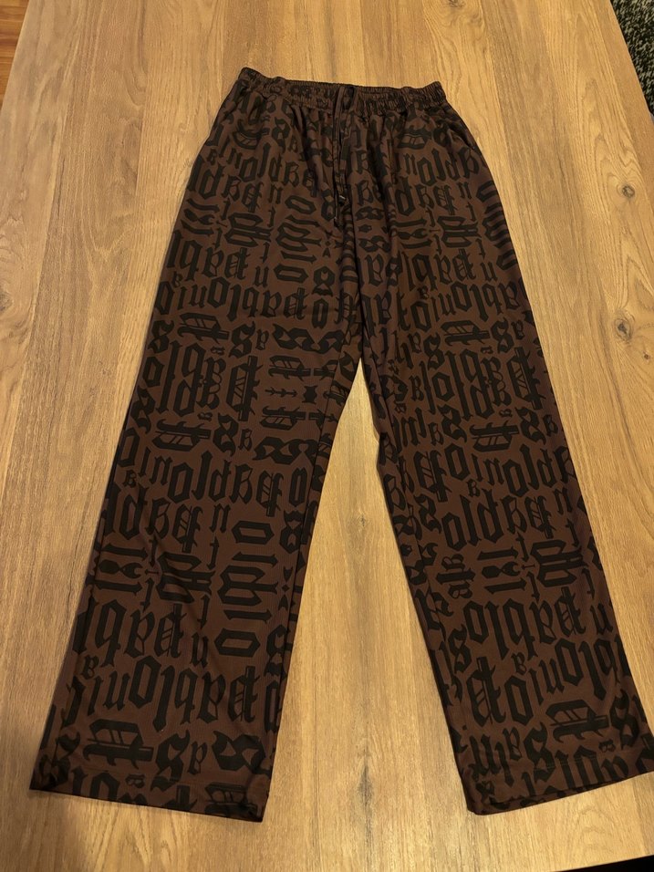 Kahverengi, rahat kesim ve baskılı eşofman. Günlük kullanım için konforlu ve trend sokak stili sunar. ️