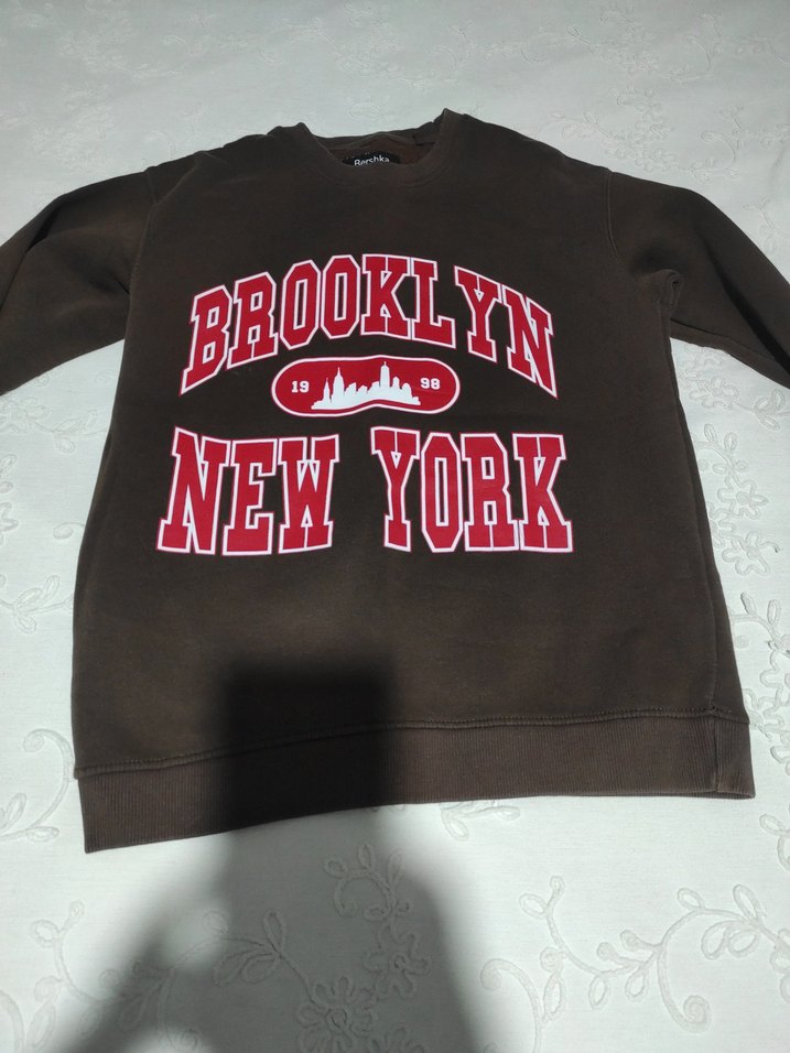 Kahverengi, bisiklet yaka ve uzun kollu bu sweatshirt, "Brooklyn New York" baskılı, yumuşak ve sıcak kumaştan yapılmıştır. ️#bershka#koton