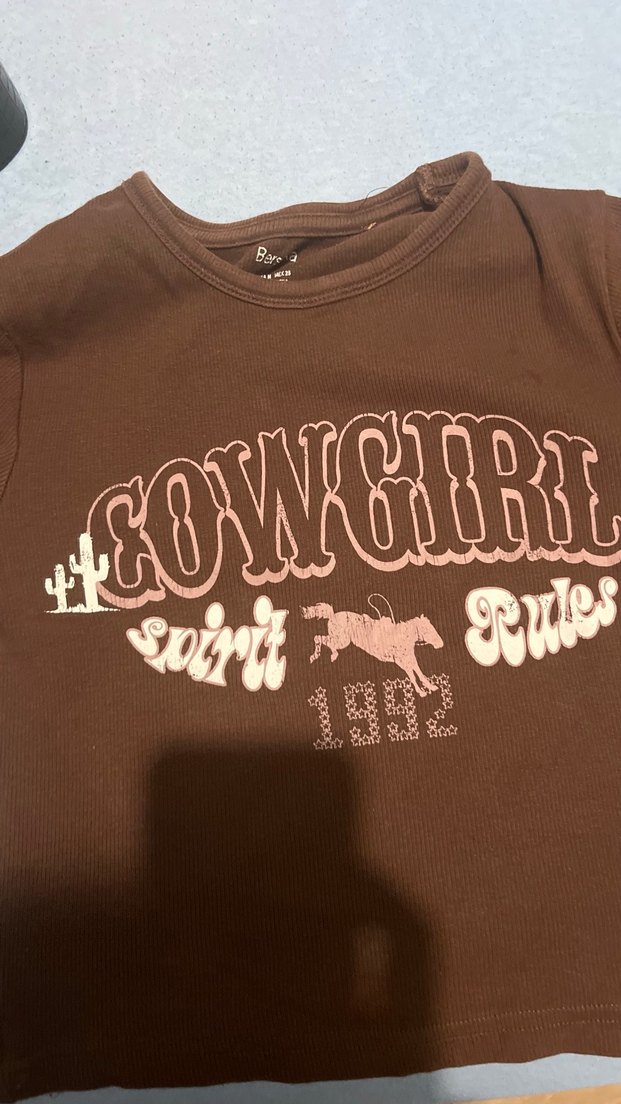 Kahverengi süet kumaştan, uzun kollu, baskılı 'COWGIRL spirit rules' yazılı, Bershka