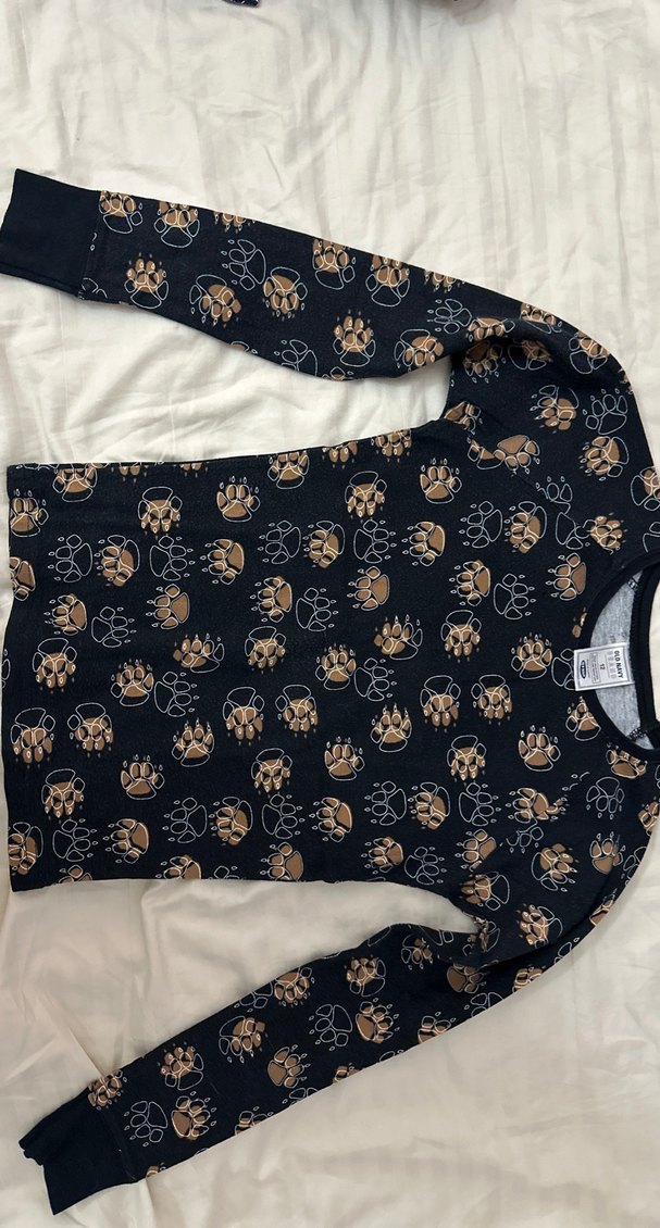 Kahverengi baskılı patili desenli, uzun kollu, yuvarlak yakalı, triko kumaştan yapılmış, normal midi boyda, dar kesim kiz cocuk tişörtü.