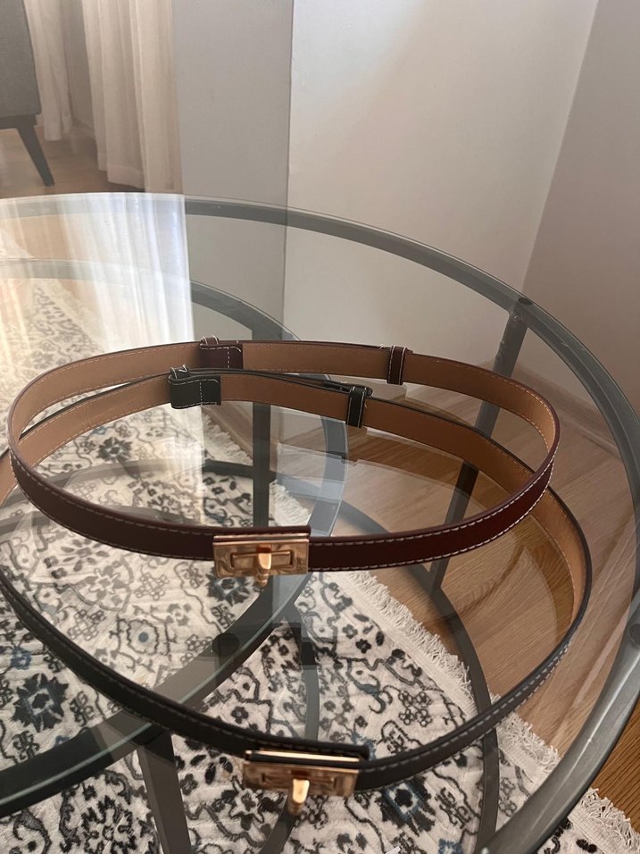 Klasik zarafeti yansıtan, Paris tarzı kahverengi deri kemerler, çağdaş ve kemerli tasarıma sahip. Her kombine şık bir dokunuş katıyor.