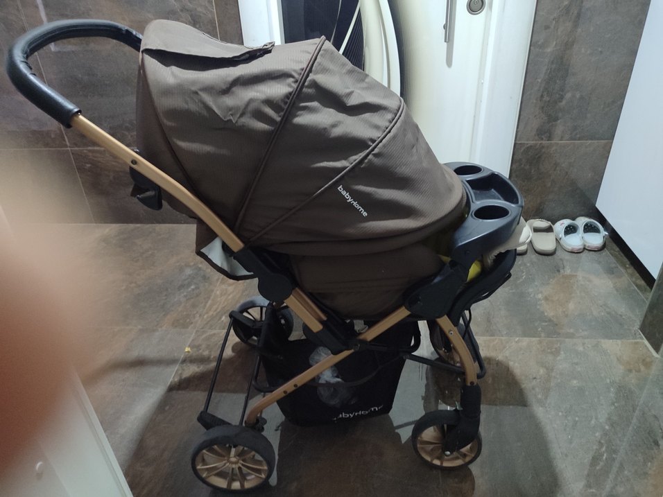 Tente ve saklama sepeti bulunan bebek arabası. Dayanıklı yapısı ve bardaklıkları mevcuttur.Sag kolunun olduğu kısımda hafif bir deforme olmakla birlikle başka hiçbir kusuru yoktur