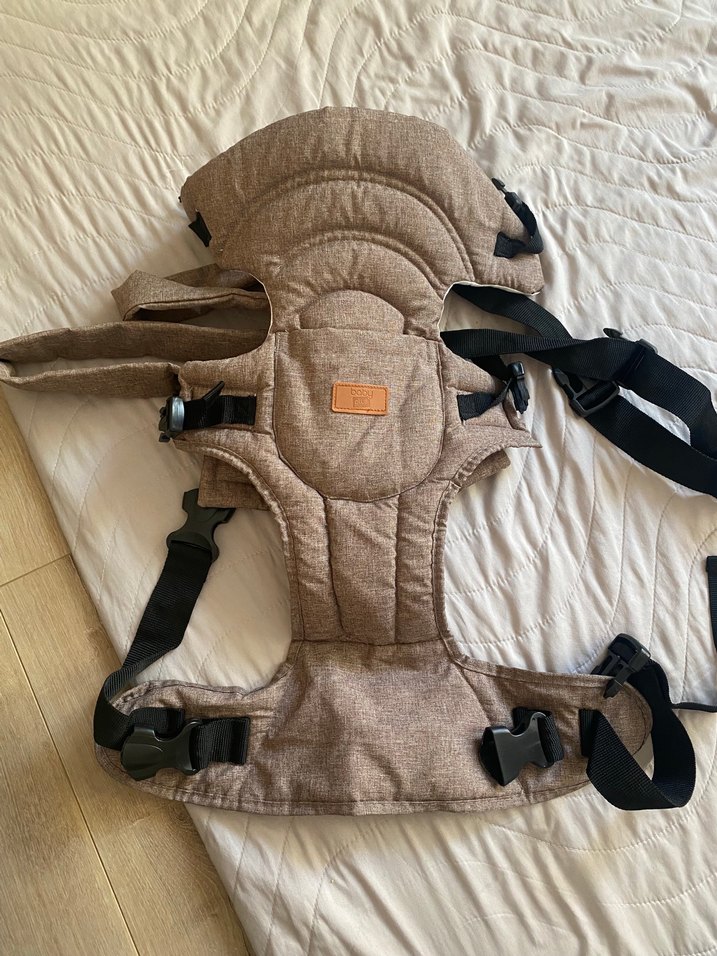 Ayarlanabilir kayışlara ve yumuşak kumaşa sahip kahverengi bebek taşıyıcı. Bebekleri güvenle taşımaya uygundur. Sıfır ayarında. Birkaç kez kullanıldı. Hiç bir deformesi yok