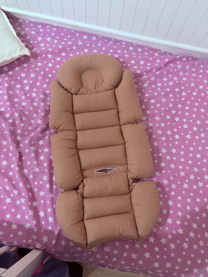 Yumuşak ve sıcak kumaştan yapılmış kahverengi bebek uyku destek minderi. Baş ve yan destekleriyle rahat uyku sağlar.