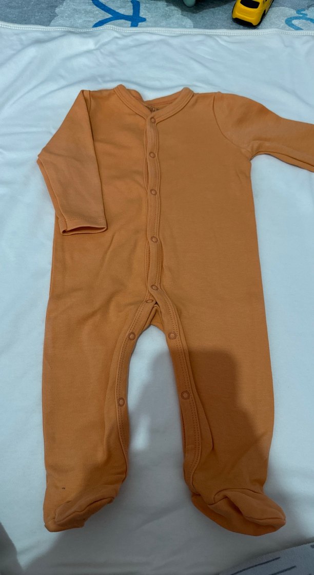 Kahverengi bebek tulumu, uzun kollu ve yuvarlak yakalıdır. Kolay giydirme için önünde düğmeler bulunur ve yumuşak, sıcak kumaştan üretilmiştir.