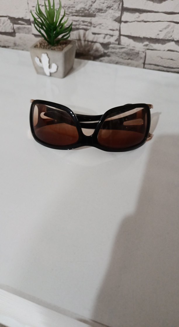 Kadınlar için koyu kahverengi çerçeveli, bej tokalı kol detayına sahip, çağdaş ve minimalist tarzda güneş gözlüğü. ️