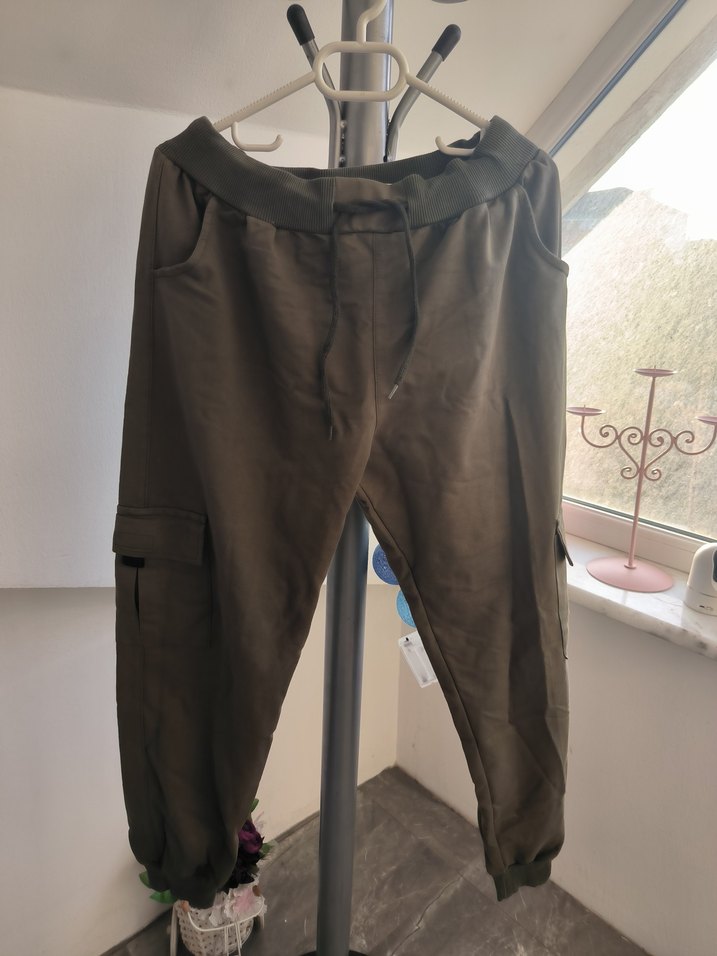 Kadınlar için kahverengi, bel detaylı, midi boy, bol kesim kumaş pantolon. Günlük ve sokak stiline uygun, sentetik dokulu kumaş.