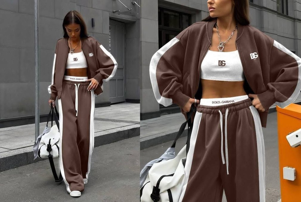 Bol kesim, uzun kollu, bisiklet yaka kahverengi kadın mini takımı, baskılı ve kemerli detaylıdır, günlük kullanıma uygundur. ♀️ esofman takım