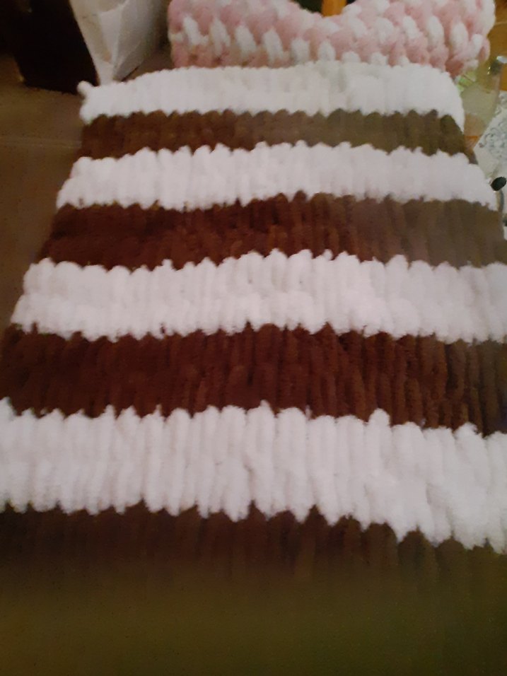 Kahverengi Beyaz Örgü Çocuk Battaniyesi