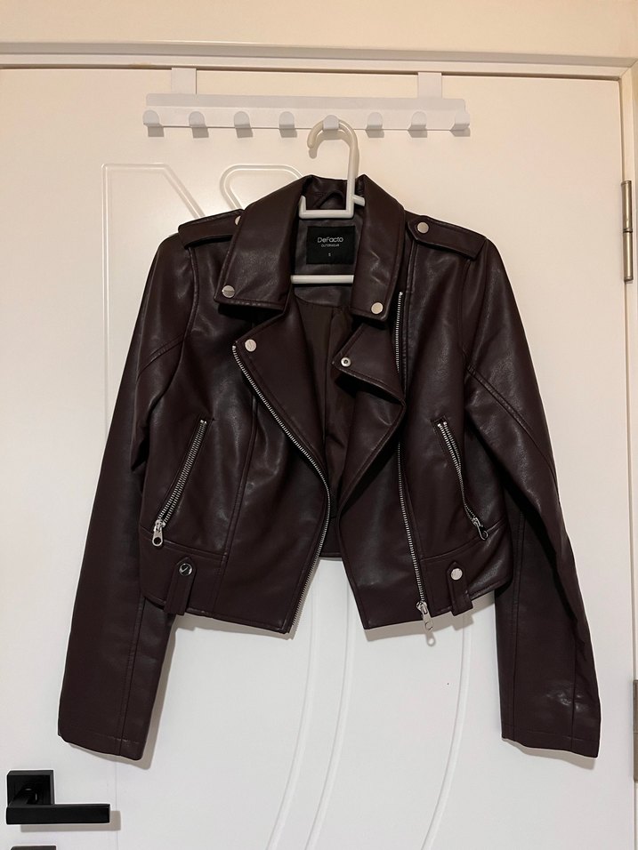 DEFACTO KAHVERENGİ BİKER DERİ CEKET